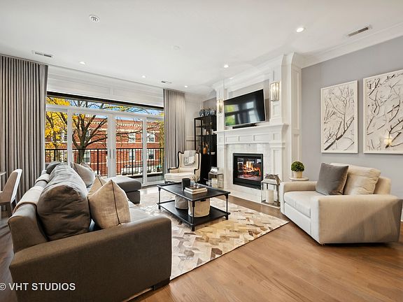 Come see this stunning 2 bedroom, 2 bath newer construction condo situated on a rare, extra-wide 31' lot in prime Lincoln Park location. The impeccable design, quality of construction and extra-wide floorplan make this one stand out from the crowd. Natural light pours in throughout oversized windows and sliding glass doors that lead to a large, private front terrace -- perfect for entertaining, grilling and enjoying tree-lined views of this charming neighborhood. The spacious living room features a gas fireplace with an impressive custom wood mantel and stone surround with ample space for a dining table. The gorgeous chef's kitchen is a true highlight featuring high-end stainless steel appliances including wine fridge, a massive island with breakfast bar seating, white marble countertops, subway tile backsplash, and custom pendant lighting. Picture perfect window at the kitchen sink. Luxurious finishes throughout this home include walnut-stained, oak hardwood flooring throughout, expansive trim/millwork, organized closets, custom draperies and window treatments. The oversized primary suite offers ample space for a king sized bed, a custom organized walk-in closet and spa-like attached bath. Luxe primary bath features radiant heated floors, dual sink vanity, Calacutta marble finishes and a walk-in steam shower with bench. The 2nd bedroom is generously sized and versatile, perfect as an office, nursery, or guest room. 2nd bath features chic subway tile, premium fixtures, and a clean, modern aesthetic. This home offers great outdoor space directly off of your living space and a beautifully landscaped shared backyard patio. Great storage throughout with several closets. Garage parking and additional storage included. A+ Lincoln Park location with fantastic walkability to some Lincoln Park's finest shopping, restaurants, transportation and parks. Oscar Mayer School District.