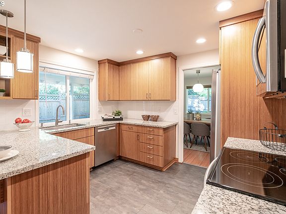 Exceptionally remolded one level ranch close to Bonny Slope Elementary. Featuring 3 bedrooms, 2 fully remodeled baths, master suite, stunning kitchen w/ custom cabinets, SS appliances & granite countertops, a den off the kitchen w/ built-ins, large dining room, a sunken living room w/ vaulted ceilings & a wood-burning fireplace and an attached 2 car garage. Outside enjoy a huge fully fenced backyard, undercover patio & garden.