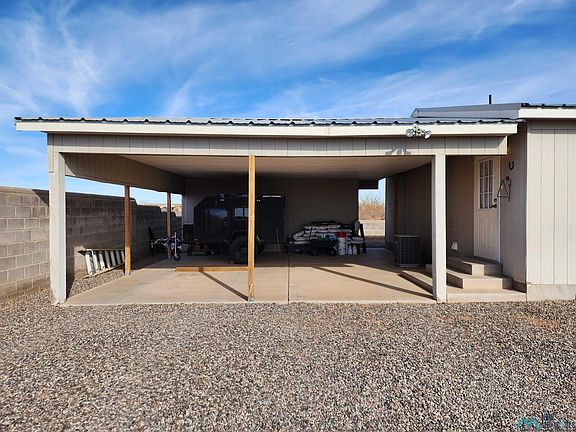 Real property situated in almost 1 acre lot northeast of town. 2003 Solitaire, 3 bedrooms 2 bathrooms, separate laundry room with lots of storage. Newer stainless steal appliances, newer double padding carpet, beautiful laminated floors, wood cabinets and upscale pellet stove for additional heating. Master bathroom with separate shower, 14kw backup generator, metal roof, attached metal carport for 2 cars with storage room and a 16X16 cover deck to enjoy the beautiful southwest evenings and many more amenities to list. Call us for your private showing today.