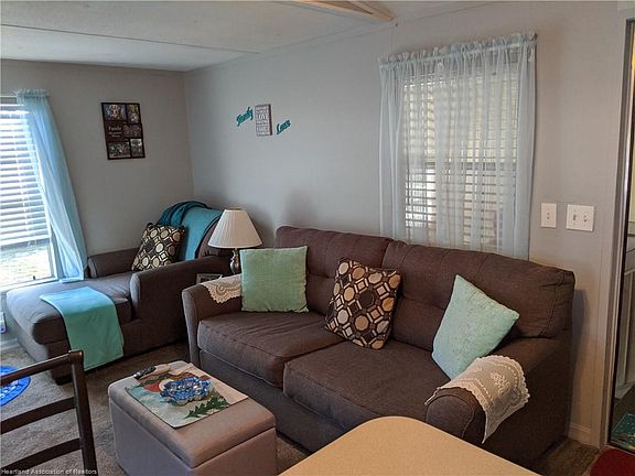 This Park Model with large enclosed porch, on rented land, is located in Lake Letta RV Park - a small, friendly 55+ community with low monthly lot rent, $295 to include water, sewer and garbage pick up. The property is immaculately taken care of with many updates: pvc plumbing, new roof 2019, new furniture in the living room 2018 and in the additional room 2019, new carpet 2018 as well as a new hot water heater and stove 2018. The owners have just put down new sod at the front and side as well as pebbled areas creating an attractive patio area with garden furniture. The property is sold furnished, but not including the 3 televisions, corner unit in the living room, pictures, personal items and the small items in the kitchen such as the coffee maker, pots/pans, dishes, etc., as they will need them for their new home. The Park has a clubhouse with kitchen facilities, planned activities, especially in season, laundry facilities, etc.
