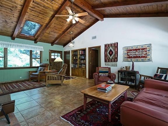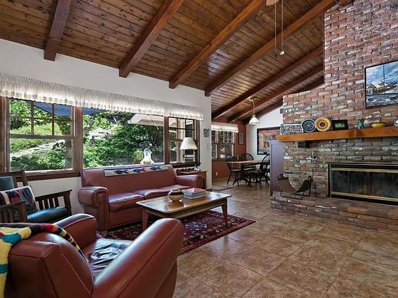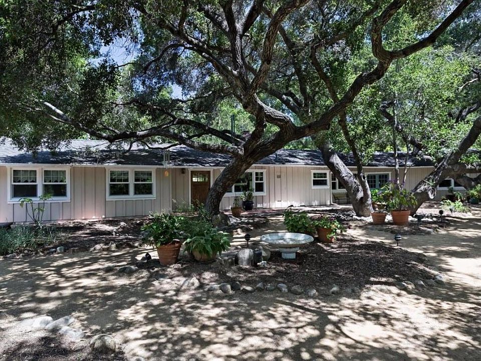 Sitting perfectly on an acre, this 4 bedroom, 2 bath home is tucked away on a private lane in the Ojai Valley. A quaint meandering walkway of stone and pebble leads you to the front door. You will be reminded of a mountain cabin with the lovely vaulted wood ceiling and the massive fireplace in the cozy living room. The kitchen opens to the dining room and both enjoy light with big windows. There are plenty of bedrooms for all your friends and family to feel right at home. Follow the rock steps in the backyard to a gazebo for viewing a sky full of stars at night. Plenty of room to add a pool, guest house or how about an art studio? This property is charming and captivating. Don't miss out.
