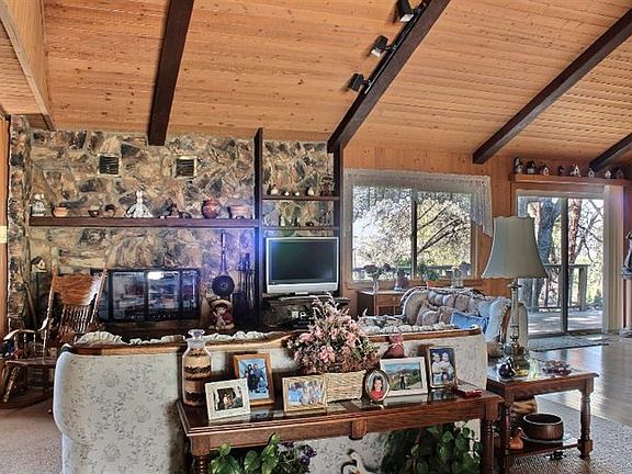 Peace and Serenity are yours when you drive up the winding drive to this one of a kind, beautiful, custom built home w/guest quarters & your own nature park. 2876sf of living space in main house & another 325sf in guest quarters, which would also make a great studio. Below the guest quarters there is an exercise room with large jacuzzi & 1/2 bath. Yard is beautifully landscaped and maintained with apple & lilac trees, magnificent oaks & pines. The wrap around trex decking, in the back yard, leads to a rock waterfall feature and stairs to an upper garden level. Daily visits from the local wildlife. House has been re-sided with Hardy plank siding and was recently painted, tile roof, New tile floors, windows have been updated, large woodstove, beautiful natural gas rock fireplace, rich interior tongue and groove knotty pine and vaulted ceilings. Loft overlooking the great room would make a great office, or grandkid get-away! Kitchen pantry has pull-out drawers for full access, Jennaire electric stove. Garage has tons of storage cabinets. Home is on Natural Gas!! Seller will look at all offers!