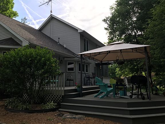 Great family home. 1.68 acres. Open concept home. Newly upgraded modern kitchen with high end stainless appliances and large center island with quartz countertops. Plenty of storage and upgrades all soft close cabinets. Great for entertaining. New air conditioner. Bew well pump. Roof totally replaced 4 years ago. Well maintained. New garage door with opener. Located on private cul-de-sac. House has a generator switch should power go out can easily switch over to run off generator with a flip of switch. Private quiet back yard- no neighbors in back. Quite Neighborhood. Home equipped with security system and smart home features to control cameras, doors, lights and alarms can be run from phone. Gas fireplaces in living room and 2nd fireplace in in master suite. Jacuzzi off master suite. Hardwood and tiled floors though out. No vinyl flooring. Recently painted whole interior -all neutral colors . Gas fireplace in living room can provide heat if electricity goes out in storm. Beautiful multi level deck overlooking wooded area with lots of privacy on 1.68 acre acre lot. Basement bedroom can easily have 4th bathroom. Seller obtained egress window bid starting at $180O. is affordable if that is concern. Quite neighborhood on cul de sac. Great for family with kids. 1 mile from Danville shopping on North end Bismarck schools. Theatre room with 100 inch retractable screen and projector.