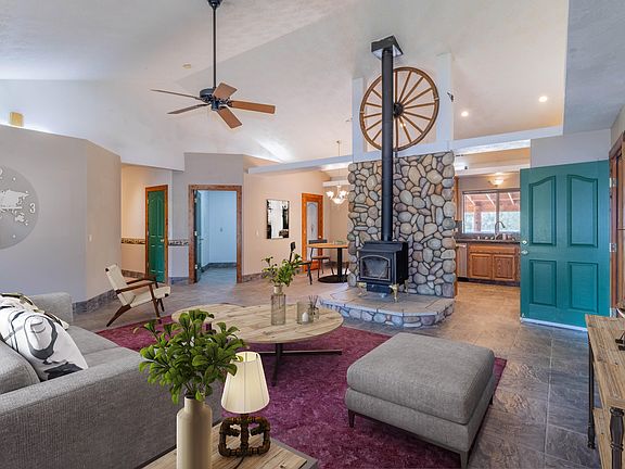 Come and take a look at this beautiful custom built and cedar sided 2x6 construction home which has 3 bedroom, 2 bath, 2021 sq ft with large front yard and back porches. Inside features include large open living room, office/gym/bonus room, vaulted ceilings throughout, tile flooring, granite countertops and wood burning fireplace. New paint. Detached studio. Outside has lots of room for any kind of animals, RV coved parking and rolling oak lined views. A Big Plus, there is a in-law unit. A Must See!