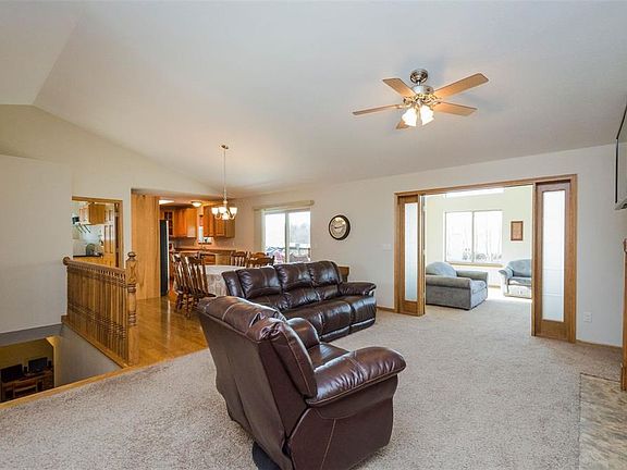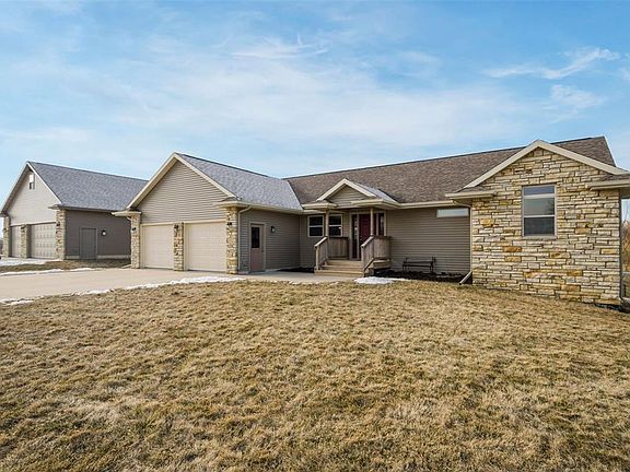 Beautiful acreage conveniently located minutes from Cedar Rapids and Marion! This immaculately maintained ranch-style 2 x 6 constructed home offers an open floor plan, stainless steel appliances, hickory cabinets, geothermal heating/cooling, six-panel doors, gas fireplace and much, much more. You will love the four seasons room overlooking the beautiful private back yard surrounded by pine trees. The walk-out basement includes a recreational room with wood-burning stove and large windows that provide an abundance of natural light. Additional detached 3-stall garage offers storage and a loft ready for your finishing touch!
