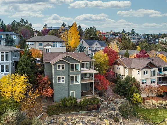 NOTE: These photos were taken prior to furnishing the home. The home WILL be furnished! Unique Neighborhood, perched above the Deschutes River with outstanding panoramic views of the Deschutes River, Pilot Butte, and Eastern Buttes. Private access to the River Trail and within 1 mile of downtown Bend. Open floor plan, floor-to-ceiling windows provide great natural light as you enter the home. Custom built-ins surround the gas fireplace feature, hardwood floors throughout the upper level overseeing the walk-out deck with amazing views. The kitchen features a new dishwasher, refrigerator, and oven. Downstairs features a primary suite with a fireplace, soaking tub, dual vanities & a massive walk-in closet, and a private deck overlooking the river. Two en-suites with individual full baths allow for privacy. This rental is a slice of privacy with a .45 acre parcel on the river with a short walk along the river into downtown. The owner will pay for all utilities. 6-month lease maximum. No pets or smoking. Parking: 2 garage spots, 2 driveway spots, and additional spots are available in the lot depending on availability.