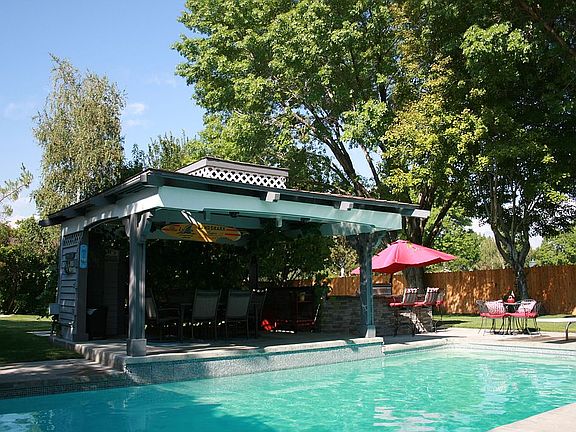 This beautiful home has it all--upgrades, amenities and lots of room for the entire family. It has a resort feel with two outdoor kitchens. The entertainers delight! Relax by the beautiful gas fire pit at night and lounge by the pool during the day. The impressive entry and bright living area welcomes visitors. The kitchen boasts ample storage space and elegant white cabinets with glass doors, roll-out drawers, corner lazy susan, upgraded appliances (Wolfe & Viking) and walk in pantry. Granite counter tops and butcher block island. Dining room with river rock fireplace. Downstairs office/work out room or bedroom with new storage cabinets. Crown molding, recessed LED lighting and ceiling fans featured throughout the house. Double french glass doors lead out to the patio and beautifully landscaped back yard, sparkling in ground pool, spa, gazebo and newly purchased shed for extra storage. Master bedroom features walk in closet with mirrored doors, master bath has been updated with new fixtures, vanity, bath, and shower with two showerheads. Two car garage has great storage cabinets. This home is a great combination of amenities, upgrades and features for your family to enjoy for years to come. Make this your new home! FSBO please contact owner directly at 760-784-1667 or heidi@eldridgeelectric.com