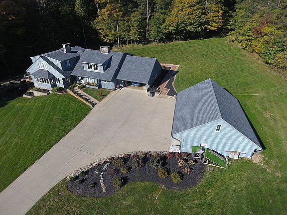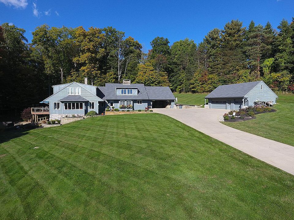 A rare opportunity to be welcomed home by this oasis setting! 20 secluded acres featuring a stocked pond & 11 acres of wooded land full of wildlife to explore. A stunning home with extensive updates including a chef's dream gourmet kitchen with high-end appliances, custom cabinets & granite countertops. Unwind with spectacular views from the great room as well as a stone wood burning fireplace. Take in the outdoors with a spacious composite deck or paver patio. The owner's suite features again beautiful views, walk-in rainfall shower, soaking tub, double sinks, walk-in & built in closets. 5 BR including 1st floor en suite & a lower level en suite. Plenty of options with 5 car garage. A must see property near I 71 for convenient commute to Cleveland or Columbus.
