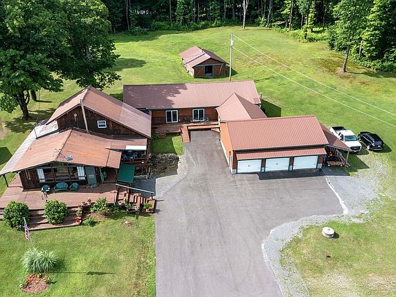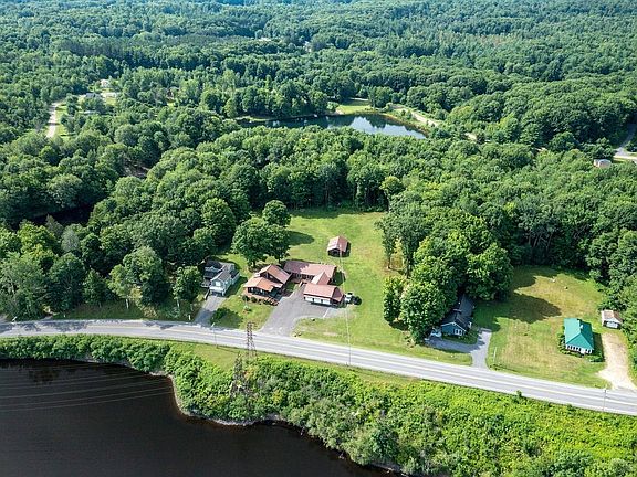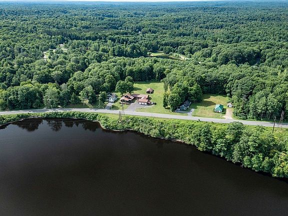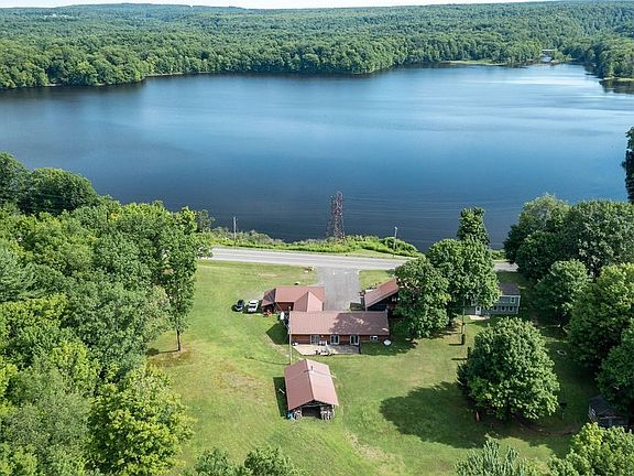 This one-of-a-kind property is awaiting lucky new owners. Gorgeous views of the Lower Reservoir & 5+ acres here w/water frontage & opportunity abound. 3 parcels in total w/more than 4,000 square foot home (including the HEATED INDOOR POOL area) & also featuring oversized 3-car heated garage w/soaring ceilings & plenty of shop/storage space. There are additional outbuildings as well including one that houses outdoor wood boiler (2 years young) providing radiant in-floor heat for the indoor pool area as well as the large office space! Indoor pool has newer power safety cover and filter and there is an exhaust fan to keep humidity proper. Plenty of deck, patio & yard space outside from which to enjoy this picturesque slice of Earth including rear waterfront! Step inside to a full wall of glass overlooking the gorgeous Reservoir. Two 1st-floor bedroom options & 3 full baths on the main floor also. Second kitchen near pool area, great for entertaining & this can be entirely separated from main home. There is a basement for additional storage & housing mechanics. Additional loft space, too, which is currently used as the owner's bedroom w/half bath. Owner may consider holding the note.