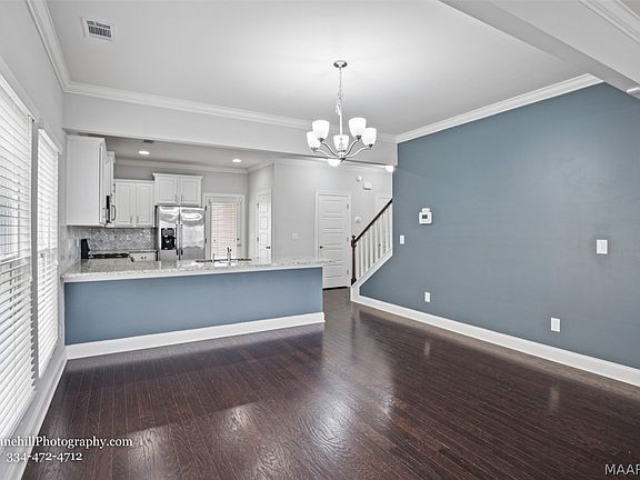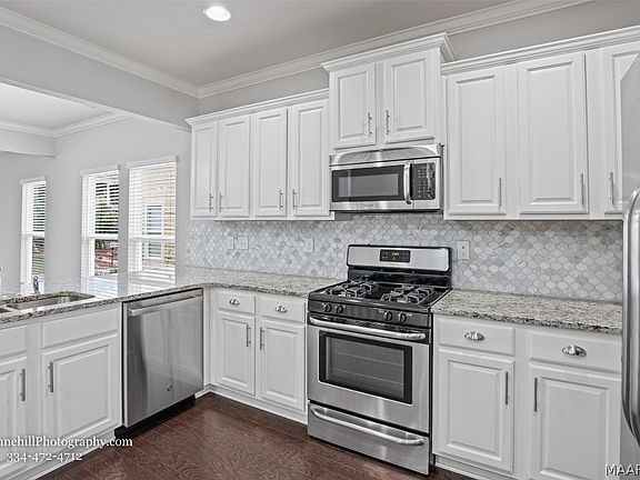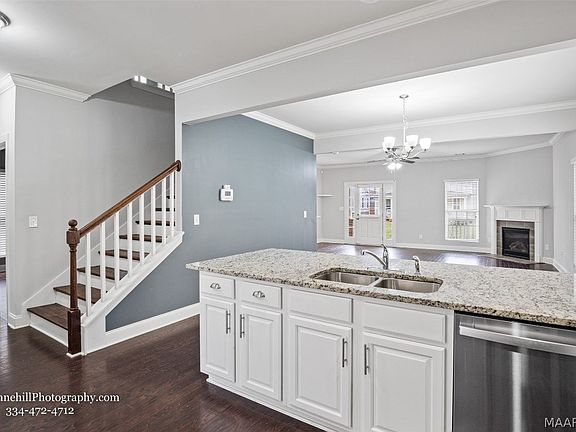 WONDERFUL Classic Charleston Southern Style home (The Idlewild) now available for a short time in the much sought after Eastwood neighborhood so convenient to Restaurants, Shopping, Medical, Robert Trent Jones Golf Course and all the attractions Prattville has to offer. Termite Bond renewed till JUN 2023. ADT Monitoring Equipment for 1st floor & all Doors, Motion Detectors and Glass Break. Fresh Paint on Entrance Door and Some Interior (AUG 2022). New Dishwasher (MAR 2022). Blink Doorbell Camera. Rack Storage added to Garage Ceiling and Updated Shower Heads/Wand (SEP 2021). New Hardwood Flooring (SEP 2020) in Master Bedroom and Both Closets (No Carpet on First Floor), as well as Loft Area and Common areas on Second Floor. Nest Thermostat (2020) for Upstairs and Downstairs Control Units. Wainscotting (2018) in Largest Upstairs Bedroom. New Tile (2018) to Front Porch. Kitchen featuring Granite Countertops, Tile Backsplash, Breakfast Bar, Deep Sink, an Abundance of Cabinetry, and Stainless Appliances. 36' High Vanities. Hardwood Flooring to include Wood Tile Flooring in Bathrooms and Laundry Room add to elegance and durability. Large Master Bedroom features Double Closets and Box Ceiling. Master Bathroom with Double Vanities, Soaking Tub and Large Tile Shower. Wide Covered Front Porch with Columns. Rear Loading Garage. Carrier AC just serviced in AUG and given a clean bill of health. Call me TODAY for your personal tour before this one is gone.