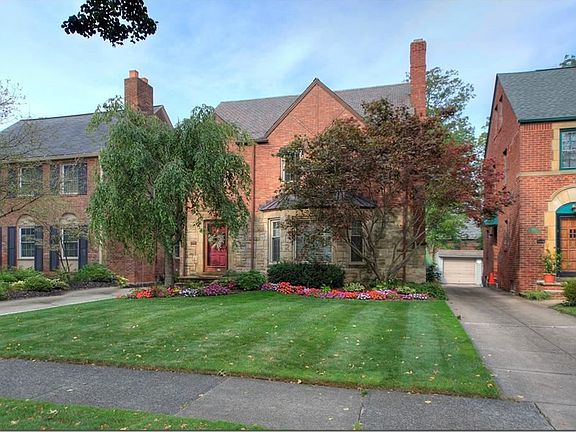 Exquisite stone and brick colonial with stunning architectural details including slate roof, cove ceilings, fingertip moldings, arched doorways and gleaming hardwood floors. Decorative tile foyer opens to the gracious light filled living room with large bay window and wood burning fireplace with beautiful marble surround. The formal dining room has wainscoting and a built-in corner china cabinet. A step down from the dining room leads to the large inviting family room with newer carpet and slider to a lovely patio and immaculately landscaped yard. The well-designed updated gourmet kitchen features stunning Kraftmaid cabinetry, granite counters, tile backsplash, built-in microwave, top of the line stainless appliances, pendant lights, wine fridge and convenient pass through opening to the family room. The second floor highlights three spacious bedrooms with generous closets and an updated full bath with separate tub and shower. There is a third floor suite with bedroom and full bath with claw foot tub and hand held shower, perfect for guests. The knotty pine finished lower level offers a cozy bar and fireplace. Additional improvements include: central air and replacement windows, plus more. Located near Fairmount Circle and John Carroll University, shopping and dining and a short drive to University Circle, CASE, University Hospitals and the Cleveland Clinic. Nothing to do but pack your bags and move in! Will not last!