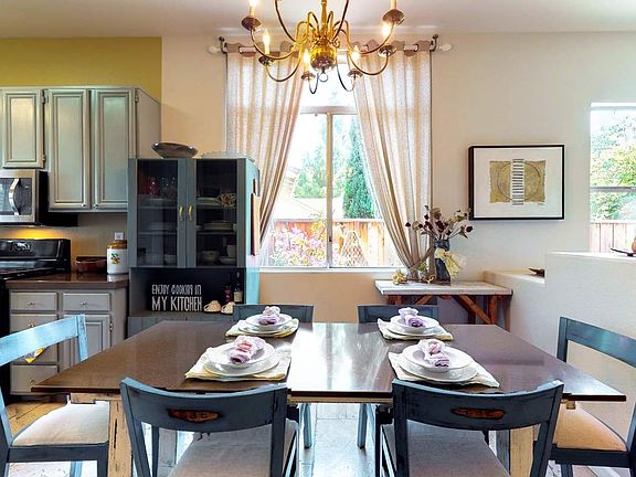 This Cozy Single Story home Features 3 Bdrms and 2 Full Baths, Newer Paint Interior / Exterior, Updated bathrooms, Dual Sink in Bathrooms, Tile Flooring throughout living room and Kitchen, dining area, hallways, Updated kitchen, Wood Burning Brick Fireplace in Living room for the Winter Nights, Ceiling Fan, Dual Pane Windows, Glass Door in living room and Master bedroom that Leads to a Relaxing Back Yard Oasis with Fruit Tree's and beautiful plants all around, Built Gardening Shed, Large Wood Deck Perfect for Summertime BBQ's, Owned Solar Panels (22), Located in a quiet Cul-De-Sac, Laundry area leads to garage, Spacious 2 Car Garage, Close to the new BART Station and Shopping, Close to Schools Open House Sat 6/1 & Sun 6/2 from 1 pm - 4 pm