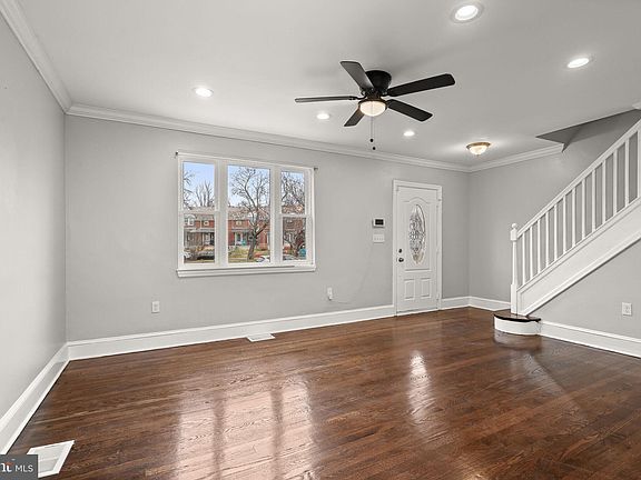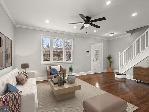 The open and airy living room welcomes you with rich hardwood floors, recessed lights, a breezy ceiling fan, and a fresh, neutral color palette adorned with crown molding creating a seamless flow throughout the main living level. Entertain with ease in the dining area, perfect for hosting festive gatherings. The gourmet kitchen, a culinary delight, features stainless steel appliances and granite countertops, complemented by a crisp, white subway tile backsplash. The upper level unveils three spacious bedrooms, each graced with crown molding and a ceiling fan. The full bath showcases a ceramic tile surround tub-shower with a decorative mosaic tile inlay and newer complementary ceramic tile flooring. Discover the perfect space for movie nights or catching up on your favorite shows in the basement recreation room, complete with a convenient wet bar area to keep snacks and beverages at your fingertips. A powder room and walk-out stairs to the private fenced-in rear yard round out the lower level. Recent updates include fresh paint, a new bathroom vanity, lower-level stairway carpet, replacement windows, luxury vinyl plank flooring, gorgeous, just refinished hardwood floors, and a newer HVAC system. Indulge in the verdant seasonal views of Fairway Park just outside your front door, offering a tranquil backdrop to your daily life. Historic Dundalk, situated near the Patapsco River waterfront, is only 7 miles from downtown Baltimore, providing easy access to the city's vibrant attractions, including the National Aquarium, Camden Yards, and M&T Stadium. The convenience of major commuter routes such as I-95, I-83, and I-695 enhances accessibility for residents, making this not just a house, but a truly welcoming home. Discover your new lifestyle in Dundalk! Note: Some interior photos have been virtually staged.