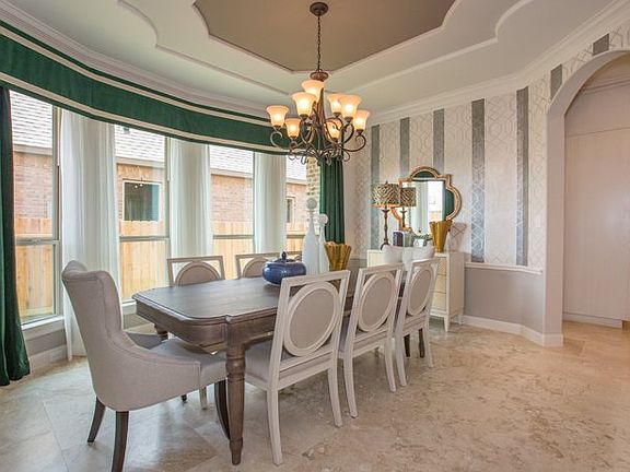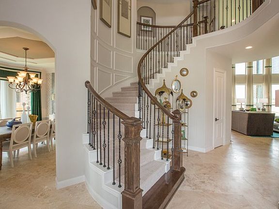 The popular two-story Stanton plan by Village Builders features a two-story foyer with stunning curved staircase, a study with the option to add ceiling beams as well as the option to add built-ins, formal dining room, island kitchen with adjoining breakfast nook, a covered rear patio with the option to add an outdoor grilling area, and a three car tandem garage with porte-cochere. The first floor master suite features an en suite master bathroom with walk-in shower and separate tub, dual sinks and private toilet enclosure, and dual closets with the option to add built-in shelving. The second floor features a spacious game room with a balcony! The Stanton floor plan includes the option to add a sixth bedroom or a media room.