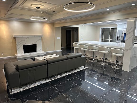 Nestled in the serene hills of Upper Bel Air, this stunning property spans nearly 4,000 square feet of luxurious living space, recently upgraded with high-end enhancements. Indulge in the elegance of lush turf, sleek Euro-style kitchen cabinetry, Carrara quartz finishes, and state-of-the-art Milgard sliding glass doors. The centerpiece of the kitchen is an impressive, jumbo-sized quartz island with waterfalls, providing ample space for casual dining, social gatherings, and culinary creativity. The open floor plan seamlessly connects the kitchen, living, dining, and formal rooms, all with sweeping views. Sophistication abounds with large format polished porcelain tiles that reflect light beautifully, and decorative ceilings featuring ambient lighting. The master suite is an expansive upper-level retreat offering breathtaking views, a spa-like ensuite bathroom with a jacuzzi, walk-in shower, and an adjoining sauna for ultimate relaxation. Custom his and her walk-in closets provide ample storage and a touch of luxury. A picturesque balcony offers sweeping city, mountain, and lake views, perfect for morning tranquility or evening relaxation. Each room is a blank canvas ready to cater to your lifestyle needs. The open floor plan, enhanced by large floor to ceiling sliding glass doors, creates a seamless transition between the indoor and outdoor areas, allowing for natural light and fluid movement throughout the space. The outdoor oasis includes a verdant backyard paradise with a pergola set upon phoenix sand porcelain tiles for al fresco dining, surrounded by plush turf that creates a beautiful, evergreen space. The manicured lawn meets the endless California sky, ideal for hosting summer barbecues, serene yoga sessions, or simply basking in the sun. The sounds of birds and exotic wildlife add to the serene ambiance. Enhance your living experience with unique touches such as recessed lighting in the kitchen and contemporary circular lights in the living area. This residence is more than just a home; it is a personal retreat that offers an escape from the ordinary, blending luxury and nature in perfect harmony. Contact us today to schedule a viewing and experience this extraordinary property firsthand. Also available for short-term rentals and filming. Available furnished @$17,500/month.