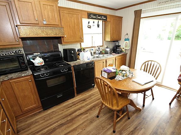 A charming piece of paradise nestled in the heart of Savannah, NY. Situated on a sprawling 1.9-acre lot, this property offers a harmonious blend of comfort and convenience. As you approach the home, you'll be greeted by a generously-sized front porch, perfect for relaxing afternoons and warm conversations. Accessibility is a breeze with a thoughtfully installed ramp, ensuring that everyone can enjoy the serene surroundings. For those with a penchant for hobbies or extra storage, a spacious 2.5-car detached garage and a handy shed are at your disposal. The rolling green yard provides a picturesque backdrop for outdoor gatherings, gardening, or simply soaking in the beauty of nature. This property is equipped with a whole-house generator, ensuring peace of mind. The heart of this home lies in its well-equipped kitchen, where you'll find plenty of storage space and abundant natural light pouring in through the sliding glass door. Washer and Dryer excluded. Pond on property fills in 8-12' deep. Built with 6" walls.