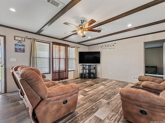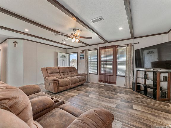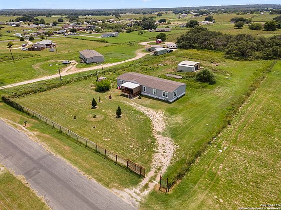 FHA, CONVENTIONAL, AND VA LOAN ELIGIBLE**- NO HOA, BRING YOUR ANIMALS! THE LOT SIZE IS A GRAND 2.5 ACRES AND HAS TONS OF MATURE TREES. HUGE INSULATED METAL BUILDING WITH CONCRETE SLAB AND 220 PLUG. AN IMMACULATE OVER 2300 SQ FOOT 4 BEDROOM / 2 BATHROOM HOME WITH MEDIA ROOM/SECOND LIVING AREA. HOME BUILT IN 2019 WITH A STYLISH INTERIOR DESIGN. SITUATED ON. ENTIRE PROPERTY FENCED IN. LESS THAN 1 MILE TO IH 37 AND HWY 281, AND 24 MILES TO DOWNTOWN SAN ANTONIO. PRISTINE GOURMET KITCHEN W/ LUXE CABINETRY. ATTRACTIVE KITCHEN LARGE ISLAND! TONS OF NATURAL LIGHT. COME AND SEE WHAT THIS GORGEOUS HOME HAS TO OFFER AND ENJOY THE WIDE-OPEN LAND! NO HOA.