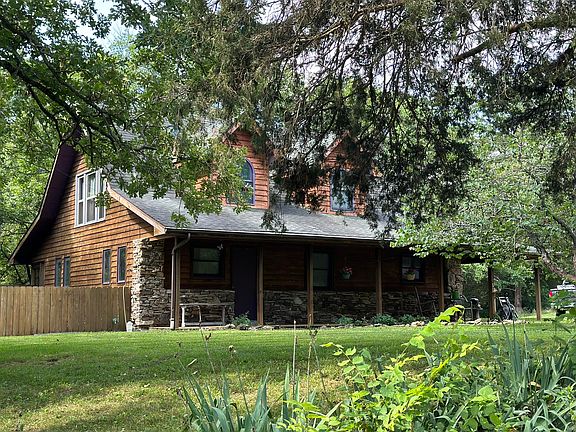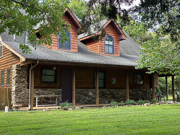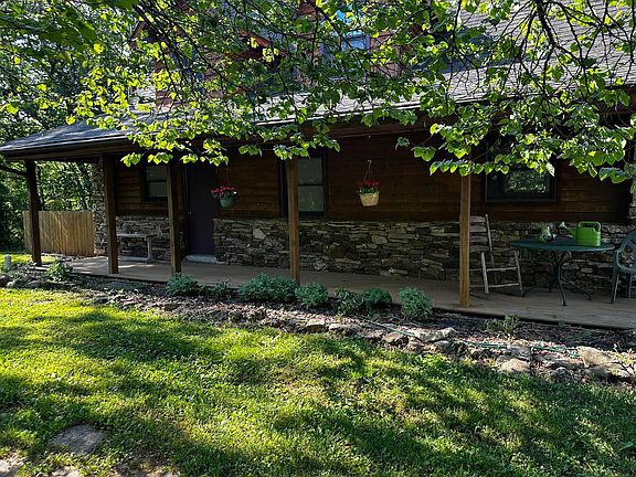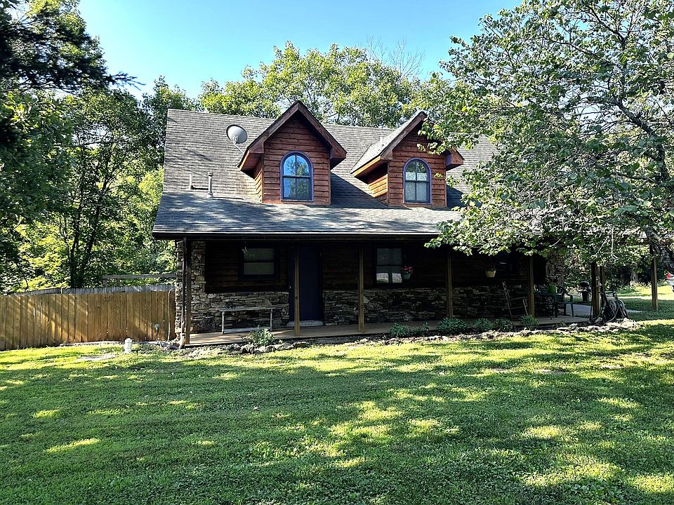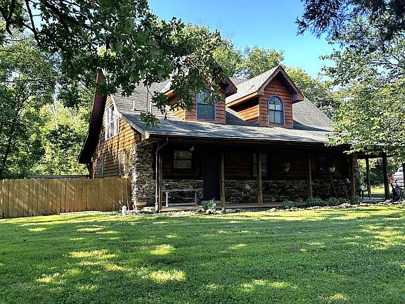 Welcome to your serene retreat by the creek in Shell Knob's heart. Nestled just 2 miles north of Table Rock Lake, this charming 1.5-story chalet exudes Ozarks charm. Imagine relaxing on the covered back porch or screened-in deck, enjoying the serenity of nature and listening to the soothing wet weather creek. Inside, the great room impresses with cathedral ceilings, a natural stone hearth, and a cozy wood stove for chilly evenings. The open loft with a half bath doubles perfectly as a third bedroom (non-conforming), 2nd living area, or office. Outside, a newer 30'x40' insulated shop awaits, featuring a concrete floor and electricity, complete with second living quarters including a living area, Murphy bed, and full bathroom. For those sunny days, cool off in the refreshing small pool surrounded by a spacious deck--a perfect spot for summer gatherings and relaxation. Enjoy sitting around your firepit for those chilly evenings, sipping on your favorite beverages, and roasting marshmallows! This home offers a unique blend of rustic elegance and modern comfort, making it a true Ozarks gem for those seeking tranquility and quality living.