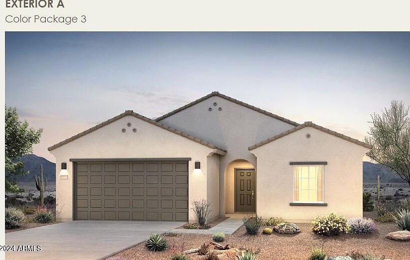 Up to 6% of Base Price or total purchase price, whichever is less, is available through preferred lender. Highly sought-after single-story layout featuring three bedrooms, two bathrooms, a spacious great room, laundry room, and a 2.5-car garage. This residence comes equipped with stainless steel appliances, including a refrigerator and washer/dryer, along with front yard landscaping, strategically placed tile flooring, granite countertops in the kitchen, expansive covered patios, and energy-efficient features integrated into the home.
