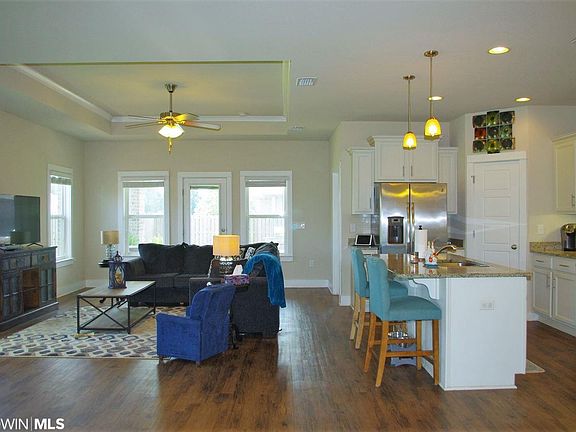 Beautiful four bedroom, 2 bath cottage in the gorgeous community of Bellaton. The home is situated on a desirable corner lot within an easy walk to the pool. Nothing like a large covered front porch to make you feel at home! As you walk through the front door in to the foyer, you will see a nice open floor plan! The kitchen boast granite counter tops, a large pantry and beautiful white cabinets! This open floor plan makes it easy to cook and entertain at the same time. And a covered rear porch makes grilling easy! The split floor plan gives everyone privacy. The master bedroom has a nice trey ceiling and lots of natural light. The en-suite offers a double vanity, separate tub, tile shower, and a huge walk in closet. The other three guest rooms are all of adequate size with ample closet space. An added bonus is the laundry room, which is large enough for added storage. Gutters have been added around the exterior. Gold Fortified certification in hand. The home is move in ready! Yes, just move in and start enjoying this home and lovely community. Bellaton community offers residents beautiful landscaped common areas, ponds, and amenities. The community pool is a zero entry, which is awesome for the little ones. Beautiful sun decks and gas grill, plus an outdoor shower and cabana area all surround the tropical landscaped pool. Another amenity is the Piccolo House, which is used for community parties and meetings. It sits under lush oaks and overlooks a beautiful pond with a fountain. Get ready to enjoy life!! Location is perfect, with an easy commute to Mobile or Pensacola!