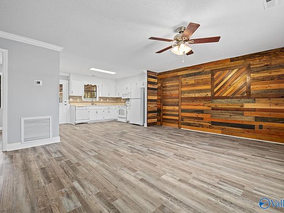 Move in ready home on a 1/2 acre lot in a prime location! 11 miles from Mazda Toyota, 20 mi from Redstone Arsenal, 16 mi from Research Park, 9 mi from I-65 exit. Home features a half acre lot with lots of upgrades including new 30-year roof, new HVAC, some new vinyl windows, as well as all new flooring throughout. Four bedrooms and two bath with low maintenance vinyl siding. The backyard is fenced and has a covered back porch. The detached storage building remains. Living areas and bedrooms have laminate flooring and tile is in the wet areas. Country living with city convenience. Hard to find move-in ready home under 200,000 dollars. Schedule a showing today!