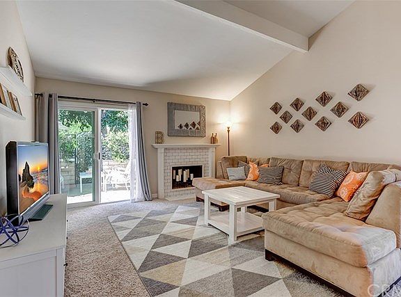 Incredible opportunity to own this highly upgraded, single level end unit with open floor plan. With plenty of privacy, and only one common wall, this home feels like your very own piece of paradise. Beautiful views of the greenbelt seen through every window. Cathedral ceilings and atrium fill the home with incredible amounts of natural light. Upgraded kitchen and appliances, upgraded bathrooms, newer carpet and paint, and beautiful tiled fireplace with wood mantle. Master bedroom has a walk-in closet with custom built-ins and slider opening to large enclosed serene patio. Second bedroom has sliding door to your own atrium. Two car attached garage with high ceilings, laundry hook ups, and massive amounts of storage. Additional amenities include a pool, spa, clubhouse, playground, sand volleyball court and grass field only a short walk away.