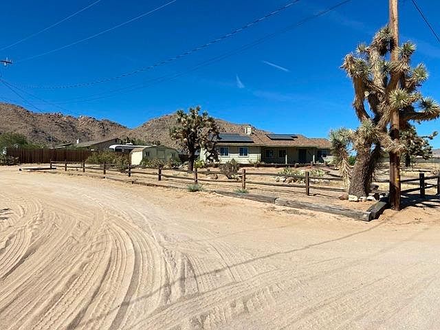 Outstanding value on semi-rural property in northern Apple Valley overlooking Sycamore Rocks with dramatic views of the valley to the south. Minor cosmetic work needed along with some roof repairs rear of patio/kitchen area under covered patio. Tile kitchen & baths, wood stove in spacious, open living room, finished 2 car attached garage along with large barn & separate storage shed. Property has solar system in place with existing lease required to be assumed by buyer of $175 per month with 13 years remaining on lease. Buyout is $32,500. Priced to sell fast - Hurry!