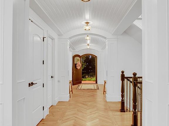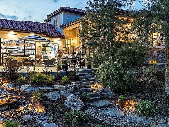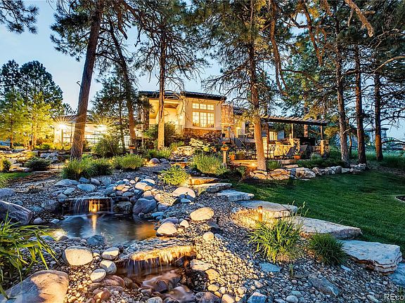 This exquisite residence is situated on nearly an acre of forested hillside with pathways and water features. Impeccably remodeled, it showcases high-quality craftsmanship and elegant new trim work throughout. Be captivated by the double staircase, refined wood trim, hand-scraped beams, and intricate ceiling details. Guests are welcomed into a grand barreled entry with herringbone wood flooring. Adjacent is a versatile room with a fireplace, ideal as a music room, office, library, or sitting room. The formal dining room, adorned with a tray ceiling and a butler's pantry, is perfect for sophisticated entertaining. A second dining area, bathed in natural light with tree views, adjoins the gourmet kitchen. This culinary haven features a “sonic style” ice maker, Miele dishwasher, trash compactor, Wolf stove, and Subzero refrigerator. An additional office/crafting space and a mudroom ensure an organized environment. The private primary suite occupies its own level, featuring a cozy fireplace, luxurious remodeled bathroom, dual closets, and an in-suite washer and dryer. The upper level comprises four additional bedrooms and two full bathrooms. The basement media room, with a projector and wet bar, is perfect for cinematic experiences. Behind stunning glass walls is an ideal gym setup. This level also includes two additional bedrooms, a bathroom, and extensive storage space. Modern conveniences include smart blinds, a tankless water system, a 6' tall crawl space, and two new A/C units. The newly added heated garage is a masterpiece, with soaring 10' ceilings for a 25' boat, epoxy flooring, hot/cold water, and a heated office space. The garage's glass doors open to a magnificent backyard retreat with a swim spa, firepit, two fountains, and an orchard with pear, apple, and peach trees, plus raspberry bushes. This unparalleled home offers a private park-like setting, perfect for refined living and entertaining.