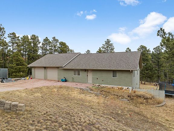 Home in the hills! This 4 bedroom and 2 bath home has vaulted ceilings and an open floor plan. Main level has 2 bedrooms and a large bathroom with laundy. Walk out basement has 2 more large bedrooms with oversized bathroom with a double vanity. Huge 32x26 garage. Beautiful 7.5 acre lot with plenty of room for a shop. Close to Custer State Park, National Forest Service, and only 25 minutes to Rapid City.