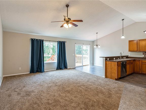 Walkout Ranch near Easter Lake with 2260 sq ft finished. Open floor plan. Kitchen has vaulted ceiling and dining area with sliders to rear deck. Kitchen appliances included. Main floor primary bedroom with full en suite bath and walk in closet. Two additional bedrooms with full hall bath. Plus convenient main floor laundry. Finished walkout lower level has 4th bedroom, 3/4 bath, and family room with wet bar. New roof in 2022. New siding this year. Freshly stained rear deck. New interior carpet and paint. Well-maintained home in great location.