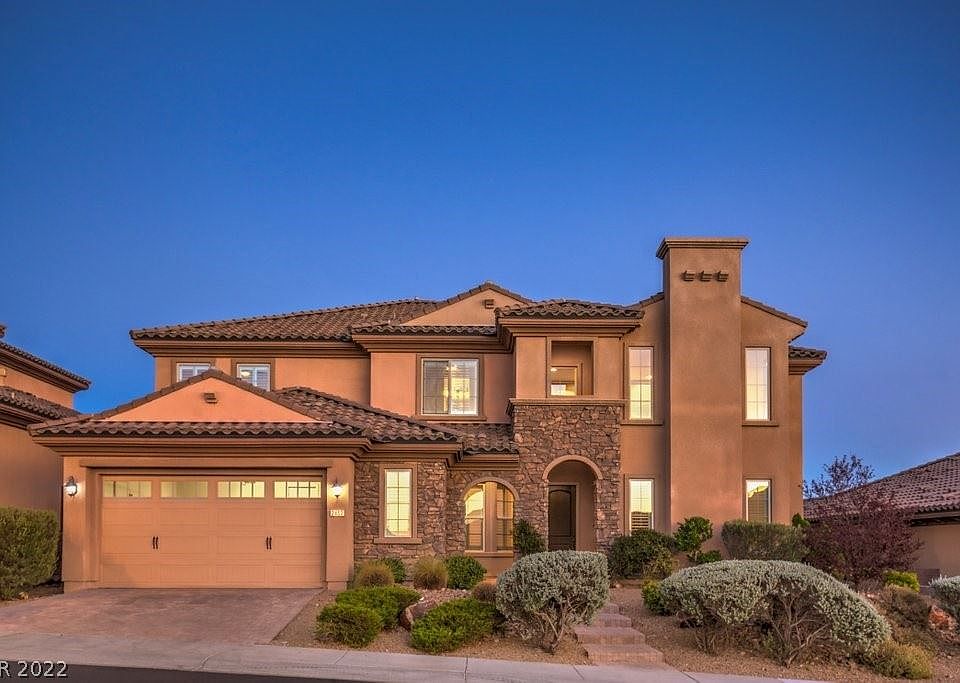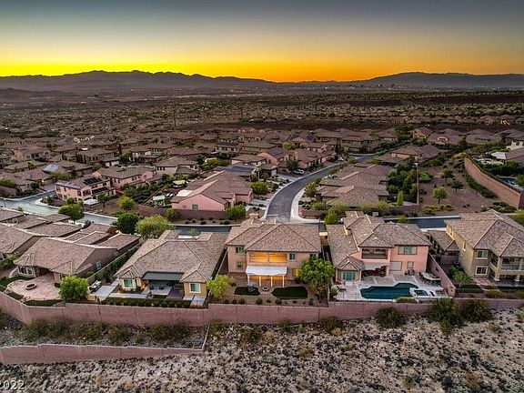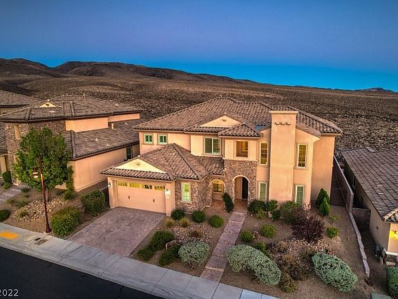 Hill top lot with panoramic view of Sloan Canyon conservation area in prestigious guard gated club madeira! The living room features cathedral ceilings, and a spacious family room ideal for gatherings, with picturesque windows of Sloan Canyon & fireplace. The kitchen features stainless steel appliances, including 2-built-in ovens, 5-burner cooktop, hood vent, granite countertops and tile backsplash, large island with breakfast bar, & walk-in pantry with ample storage. A formal dining room with butlerâEUR(tm)s pantry. The bonus room is ideal for a gym, office or media room. There is a 10x10 room under the staircase that would be great for a wine cellar or kidâEUR(tm)s playroom. The primary retreat is separate from other beds with a balcony that has endless views, a walk-in closet with built-ins, garden tub, and shower. Large secondary bedrooms all have walk-in closets and bathroom access. The backyard paradise is perfect for entertaining, with serene views, a firepit, lush landscaping, covered patio.