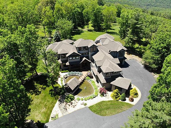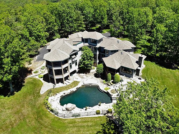 A home for all seasons in picturesque privacy. This elaborate estate is perfect for entertaining and family life. With 10,000 sf , this home exemplifies luxury in every detail from the views from ipe decks to the top end appliances and materials used. The extraordinary kitchen opens to the family room, breakfast room and bar. Each bedroom suite enjoys an en-suite and custom walk-in closet. A lower level rec area with custom bar encompasses a large theater rm w/HD projection and sound opening onto the patio and pool. A barn complex adds a separate large apartment and bunkhouse for groups.