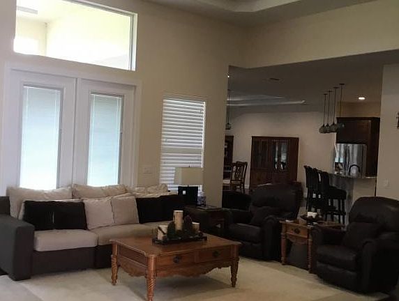 New Custom Built Solid CBS Construction w/Impact Glass Windows & Doors, French Door Entry leads into Great Room w/Stone Fireplace. Features 10',12' & 13' Coffer Ceilings, tile & wood floors, granite tops, Island kitchen w/stainless steel appliances, Formal dining room, Spacious master suite, Master bath w/his & her walk thru shower and Jacuzzi tub, Guest Bedrooms include private full baths, Home office, Screened Lanai w/Outdoor kitchen & half bath, Security system. Close to shopping, schools & Lake Okeechobee