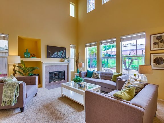 Completely updated home with 3 bedrooms, 3 bathroms, living room, dining room, kitchen & 2 car garage, Captivating Golf Course and Mountain Views. This well Maintained luxurious resort-like home includes an open floor plan, newly installed custom cabinetry, flooring, and crown molding. Modern Updated Kitchen with Island and stainless steel high-end appliances, Quartz Countertops in kitchen and bathrooms, updated gas fireplace with natural stone, new light oak/wide plank flooring throughout the home, Luxurious Rosewood stairs, Spacious Master bedroom w Views Galore,Lexan Glass/Trex Balcony with custom Umbrella, His & Hers Walk-in Cedar Closets, Roman Tub, Pofessionally Landscaped yard, Palm trees all around with Fig, Avocado & Lemon Trees. This home includes access to 3 community pools including pools at Augusta, the Eastlake Country Club Park, and Dolphin Beach, which is a 1 minute walk from the home. Pool is heated year round, jacuzzi, kids jungle gym/play area, mini man-made beach, basketball, volleyball, tennis, golf, community events, and more! No pets please, Includes new top of the line appliances (2 refrigerators, oven, dishwasher, washer, dryer, 2 LED 65 and 55 in. Flat screens, outdoor furniture, and more