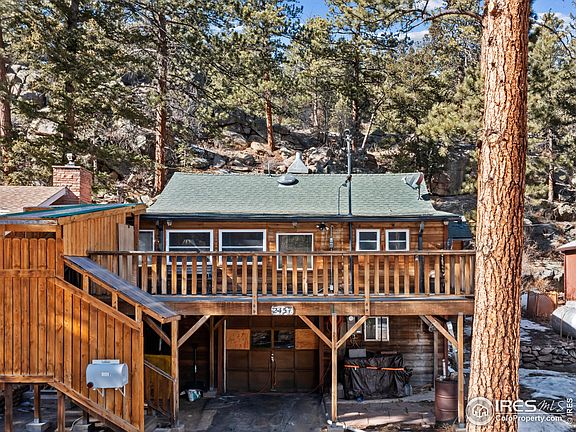 Allow me to introduce you to 2457 Highway 34! This charming 1915 cabin is the perfect blend of convenience and rustic charm. From the moment you enter, you'll be welcomed by the tongue in groove pine and open layout. The one-bedroom, one-bathroom cabin is situated on a level lot with easy parking and access to the highway. The living area is a cozy, inviting space with a wood-burning fireplace, vaulted and insulated ceiling, and solar tube for extra natural light. Enjoy a cup of coffee and a book in front of the fireplace, or relax on the deck to the sounds of the Big Thompson River. The attached one-car garage and unfinished ground level is great for storage, workspace or vehicles. This cabin is ready for you to make it your own.