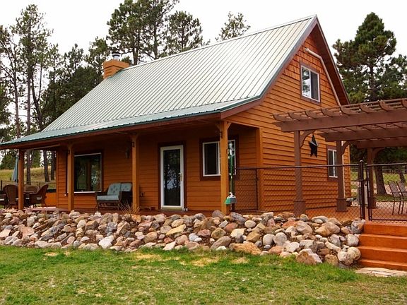 Investors, here is an opportunity you can't pass up for the perfect rental, or weekend/retirement home. 7.75 Acres situated a top of a plateau overlooking Box Canyon with a total of 3 bedrooms and 2 full baths in main cabin. (1037 sq ft) Guest cabin with own full bath. (300 sq ft) Lot provides room for additions or even adding a few more vacation rentals (no covenants). Amenities abound with a new Cedar Pergola, Hot Tub, Outdoor Fire place and a two car garage and a 30 x 40 heated shop. This property is already producing income as a vacation rental and plenty of opportunity for additional income by renting the main house and guest cabin, or you can live in the main cabin and rent out the guest cabin. Possibilities abound with one of the most stunning views in the Southern Black Hills. 20 minutes south of Rapid City.