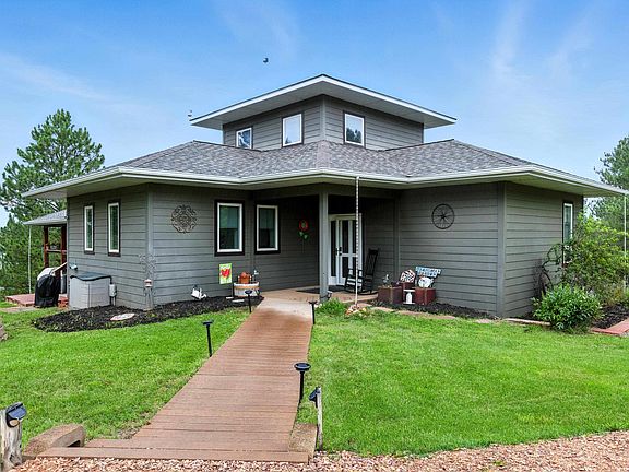 Welcome to this beautiful home in the heart of the Black Hills! Built in 2005 and perfectly situated on 5 acres, this 4-bedroom, 3-bathroom home offers breathtaking views overlooking Box Canyon. The functional kitchen features beautiful butcher block counter tops, ample cabinet space, and a layout ideal for both cooking and entertaining. Enjoy peaceful mornings and scenic evenings from the large covered decks or the private deck off the master suite. The spacious master bedroom includes an en-suite bath and a private outdoor retreat, perfect for soaking in the views and fresh air. Interior finishes include hardwood floors, slate tile, and carpeting throughout.Wildlife lovers will appreciate the abundance of turkeys and other wildlife that frequent the property. A 30x60 detached shop with a 15x30 finished office/bonus room and a concrete floor adds versatile space for hobbies, storage, or work-from-home needs. Don’t miss your chance to own this Black Hills gem with space, scenery, and serenity. *New exterior photos coming soon!*