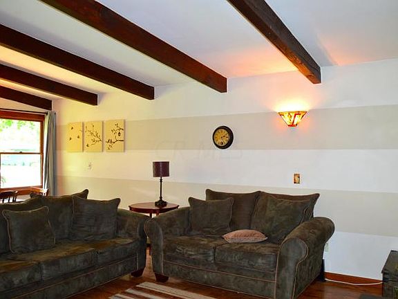 You will love this California Ranch with its vaulted and beamed ceilings...the floor plan is open and inviting and there's windows galore...it has been updated...the yard is beautiful...the exterior of the home was recently painted and in 2013 the driveway was replaced and the fencing was done...the roof was replaced in 2011!