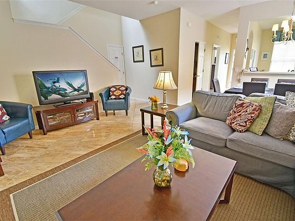 This 4 bedroom 3.5 bath town home offers plenty of space to unwind from a long of work or play at the theme parks. A 2 story home that features a bedroom downstairs and 3 bedrooms upstairs. There are 2 baths upstairs and 1.5 baths downstairs. The common areas downstairs are an open floor plan to add to the spacious feel. Nearby to all major roads with easy access to all area theme parks.