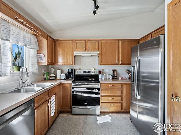 Come check out this one owner, well cared for home, in Anderson Farm subdivision. Wonderful Ranch floorplan that lives very well. This home has a huge 12x40 concrete back porch, backing up to a ditch. 4ft shelving throughout garage, perfect for all your storage needs. All new appliances earlier in 2023. Recent new carpet in main living area. Huge bathroom and bedroom in the basement ready for your finishing touches. Great access to I-25 just minutes away from shopping. This house really has it all for its new owners. Buyer to verify schools and measurements.