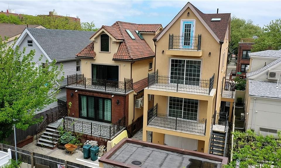 : Luxury European designed two family detached home featuring two duplexes of the ultimate in modern design.The property is enclosed by a magnificent wrought iron sliding gate. The property sits on a 25x90 Lot. The home consists of two duplex’s of the ultimate in modern design. The Duplex on third and fourth floor features a European kitchen, large eat in area, Living room,half bathroom, Central air and in the kitchen there are two sliding doors opening to a patio. It also has 2 bedrooms and 2 bathrooms in suite.Master bedroom has a French balcony with views of the Manhattan skyline. The other duplex features: 2 bedrooms and 2 bathrooms ,kitchen Ground level has a garage and storage area. Some Photos may be rendered to show potential of house .