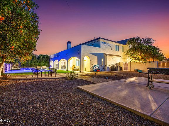 Welcome to 2458 Melrose —this stunning custom brick estate is where classic elegance meets modern luxury in Mesa's most coveted enclave. From the moment you enter the grand foyer, you'll sense the care and quality infused into every detail. For those who work from home or simply crave a quiet retreat, a formal office and versatile bonus rooms await, ensuring your lifestyle adapts to your needs. Outside, step into your very own resort-style oasis. Recently upgraded with a stunning oversized pool complete with a baja shelf and spa, lush green lawn, a covered patio, and even a personal citrus grove—perfect for relaxing or entertaining year-round.