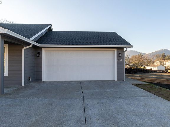 Gorgeous brand new single-level home with an open floor plan, luxury vinyl plank flooring, contemporary kitchen w/granite, quality cabinets, island, stainless steel appliances, eating bar, and master suite with walk-in closet. Enjoy the extra deep 2-car garage, minimal steps, covered patio for entertaining, fenced backyard, covered front porch and more! All appliances including washer/dryer included in the sale. Call for your private tour of this conveniently located Roseburg home today!
