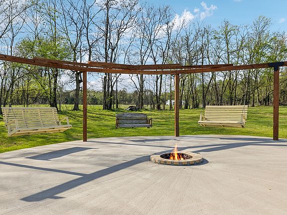 Set on 2.8 acres, the backyard is perfect for entertaining with a pergola, brick fireplace, and patio with wooden swings. There's even a barn for added versatility!