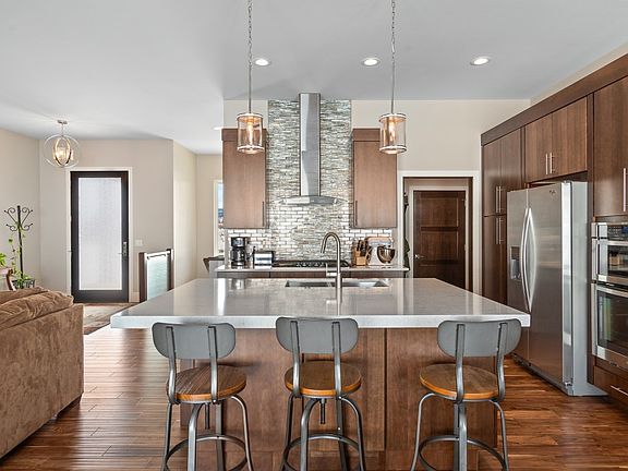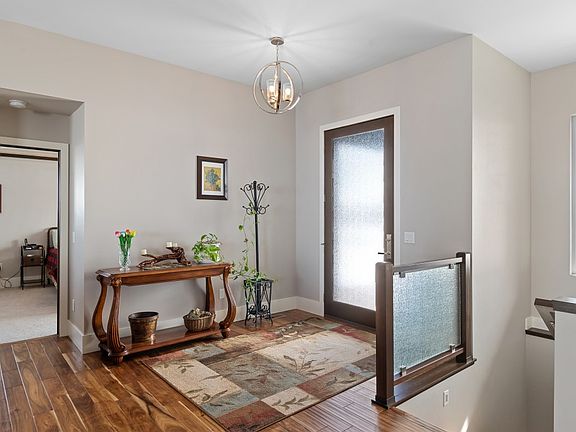 Located close to town this modern ranch is sure hit everything on your checklist. It offers 5 beds, 3 baths with amazing views on 1.75 acres. A nicely landscaped yard welcomes you to a spacious covered front patio. Inside you'll discover a floor to ceiling tile fireplace, hardwood floors,quartz and granite counter-tops, under cabinet lighting in the kitchen and rope lighting in the tray ceiling, modern doors, cabinets and pendant lighting. The master suite offers a large en suite with a walk in glass shower, and walk-in closet. There are laundry hookups on both level. The covered back patio provides the perfect spot for entertaining this summer complete with a firepit!