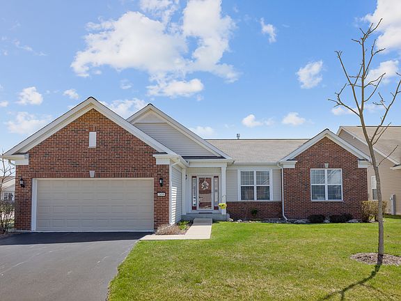 Prepare to be impressed!!! There are no details overlooked in this meticulously maintained Cascade model with sunroom! Located in the sought after Edgewater by Del Webb 55+ community. You will be captivated by the bright and open floor plan and the designer touches throughout! The Great Room which opens to the kitchen, has custom built in cabinetry, recessed lighting, crown molding and gas fireplace. Oversized sliders off the sunroom allow the sun shine in and provide access to the patio with lattice for extra privacy. You will love the beautifully updated kitchen with its quartz countertops, designer tile backsplash, tons of useful cabinets with pullouts as well as under and over ambiance lighting, center island and all stainless steel appliances! There is even a breakfast bar with room for 3 stools. In addition to having a kitchen pantry, check out the fun "hidden" coffee bar! Enjoy your meals in the sunny bayed windowed eating area. Retreat to your spacious Primary Suite with a huge walk in closet thoughtfully organized with "Closet By Design" organizers. The elegantly updated Primary Bath features raised height dual vanity with extra drawers, soaking tub and separate shower. Generous sized 2nd guest/family bedroom. Den/Office with french doors and hardwood flooring could easily be used as a 3rd bedroom. Convenient main floor laundry/mud room has extra storage cabinets and laundry sink. Need more space or storage? The 9ft unfinished basement offers so many possibilities for whatever you can envision-its even already roughed in for a bath! 2-car garage has epoxy floor and storage above. Newer sump pump with battery back up. Extensive landscaping including beautiful perennial gardens-featured on the Community Garden Walk! Premium lot that is close to the Clubhouse and all the community has to offer including tennis courts, walking trails and pool! Edgewater by Del Webb is a gated, maintenance free 55+ community and close to shopping and restaurants. Easy access to I-90 and other major roads.
