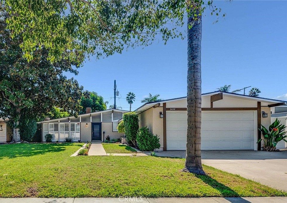 Welcome to 2458 W. Transit Avenue, Anaheim! This charming 3-bedroom, 2-bath Mid-Century Modern Freematic home, inspired by Cliff May and developed by Ross Cortese, is a true delight. As you step inside, you’ll find an inviting layout that seamlessly connects the living, dining, and kitchen areas. The living room features wood floors and large windows that fill the space with an abundance of natural light, creating a warm and welcoming ambiance. The dramatic wood beamed vaulted ceilings add a touch of elegance throughout the home, while the cozy fireplace is perfect for those chilly winter nights. A versatile room off the kitchen, complete with built-in cabinets, is ideal for a home office. Enjoy cooking in the kitchen, which overlooks the serene private backyard and offers ample cabinet space, tile floors, track lighting, a built-in dishwasher, and electric appliances. Each of the three bedrooms has its own unique charm. Bedroom 1 features large windows, wood floors, an open beamed ceiling, and a spacious wall closet. Bedroom 2 is also filled with natural light and showcases wood floors and an open beamed ceiling. The primary bedroom is a true retreat, with a large walk-in closet, beautiful wood flooring, shutters, beamed ceilings and even more natural light!! The en-suite bathroom includes a walk-in shower and tile flooring. The guest full bathroom has been completely upgraded with a custom mosaic shower wall, newer vanity, tile flooring, and light fixtures. For added convenience, there’s an inside laundry closet. Step outside to a private backyard that’s perfect for entertaining, featuring a covered patio, built-in barbecue, and plenty of space for gatherings. The two-car garage provides ample parking and storage options. And an upgraded electrical panel is the cherry on top! Don't miss the opportunity to make this lovely home your own!