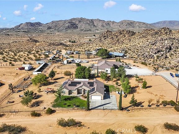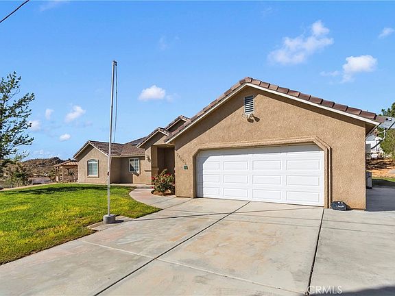 CUSTOM BUILT 2,500 sq ft home in the highly sought after SYCAMORE ROCKS area of APPLE VALLEY, on OVER AN ACRE, with PANORAMIC VIEWS! This incredible property boast with pride of ownership in every corner! With 4 great size bedrooms, 3 bathrooms, a formal living room, formal dining room, oversized family room and CUSTOM kitchen, this is the home that truly has it all! As you enter the front door you're greeted by a formal living and dining room with exterior access to your oversized covered patio! The East wing of the home you have a HUGE living space area, with an open concept kitchen, breakfast nook, interior laundry room, half bathroom and access to your large fully finished 2 car garage (garage alone is just shy of 500 sq ft!)! The kitchen has knotty pine style cabinetry, granite counters, french doors leading to your private patio, and newer STAINLESS STEEL appliances throughout! On the West wing of the home you're greeted with an abundance of storage, large guest bathroom, 4 BEDROOMS, including a primary bedroom that is IMMACULATE! The primary bedroom boast in size, with a HUGE walk-in closet, and luxurious ensuite bathroom! If that wasn't enough you also have a private access point to your immaculate backyard with your covered patio! The exterior of the home is nothing less than magnificent with pristine grass (on a self sustained irrigation system), mature trees, RV parking, an abundance of concrete work, a beautiful entry way, private patio in the backyard, gazebo area to watch our beautiful desert sunsets, and an ADDITIONAL pergola, along with incredible rock work throughout! With panoramic views, FULLY FENCED (with additional cross fencing), and PAID OFF SOLAR, this home offers EVERYTHING and more. Seller is motivated and has priced to sell!