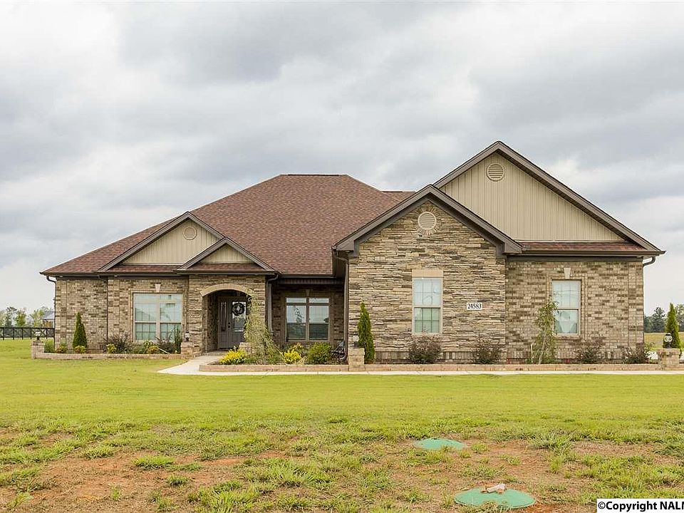 BEAUTIFUL CUSTOM BUILT HOME SITTING ON 3.2 ACRES. LOADED WITH UPGRADES. 80K POOL AND POOL HOUSE WITH WATERFALL. 5 BEDROOMS, 4 ON THE MAIN FLOOR. PRIVATE BEDROOM AND BONUS ROOM UPSTAIRS. 26' X 35' GARAGE. DOUBLE TREY CEILINGS, TILE WITH HARDWOOD LOOK IN ALL WET AREAS. OVERSIZE PANTRY. FORMAL DINING ROOM WITH COFFERED CEILING AND MAIN FLOOR OFFICE WELCOME YOU. EXTRA HIGH CROWN MOLDINGS, HARDWOODS. MASTER HAS NOT 1 BUT 2 WALK-IN CLOSETS! CHEF'S KITCHEN WITH OVERSIZE ISLAND, GRANITE COUNTER TOPS AND LOTS OF CABINETS! FULL BRICK HOME WITH BRICK LANDSCAPING WALLS AND COACH LANTERNS. UPGRADED LIGHTING THROUGHOUT THE HOME! MUCH, MUCH MORE!