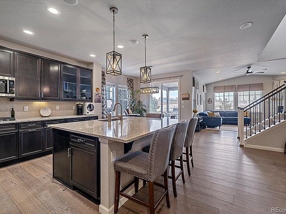 Incredible Former model home! Located in the highly sought after Whispering Pines neighborhood! Homes like this do not come available often! Upgrades galore!!! Gorgeous eat in kitchen features stainless steel appliances , granite counter tops, soft close cabinet drawers, upgraded pendant lighting, and tile backsplash. Extensive hardwood flooring on main floor. Family room with gas fireplace and ceiling fan. Custom paint and wallpaper. Gorgeous master bedroom suite with walk in closet featuring custom organizer. Spacious secondary bedrooms. Upper floor bonus room ideal for play area. Main floor bedroom suite with attached living area is ideal for in laws /extended family. Finished basement features wet bar area, bedroom, 3/4 bath, family room, work out area with professionally installed mirrors Custom spindles. Whole house speaker system. Upgraded knobs and hinges. Oversized 2 car garage. Central Air,Great yard with covered patio, sprinkler system, and fully fenced. Awesome community pool and clubhouse! Easy access to shopping, E470, and DIA... One visit and you will call this home